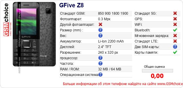 Данные о телефоне GFive Z8 на Вашем сайте