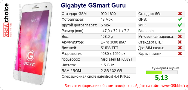Данные о телефоне Gigabyte GSmart Guru на Вашем сайте