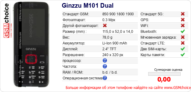 Данные о телефоне Ginzzu M101 Dual на Вашем сайте