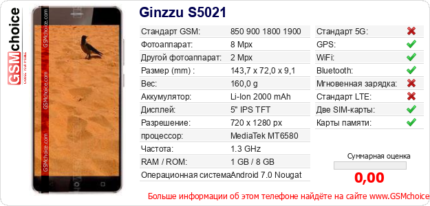 Данные о телефоне Ginzzu S5021 на Вашем сайте