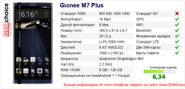 Данные о телефоне Gionee M7 Plus на Вашем сайте