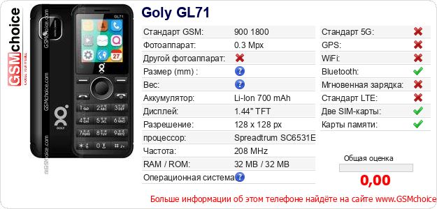 Данные о телефоне Goly GL71 на Вашем сайте