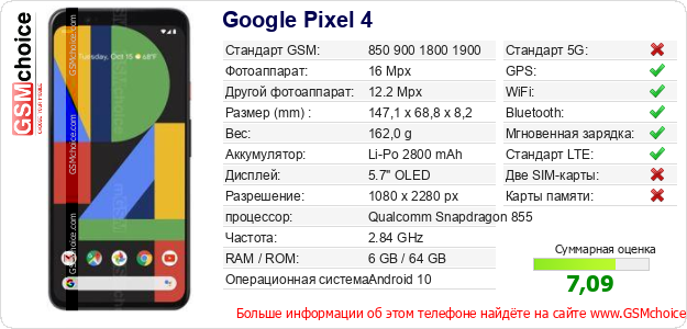 Данные о телефоне Google Pixel 4 на Вашем сайте