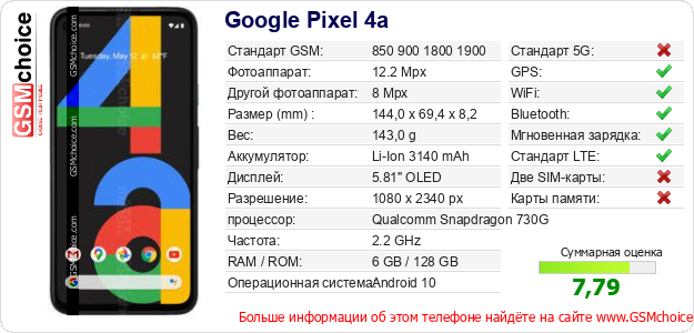 Данные о телефоне Google Pixel 4a на Вашем сайте