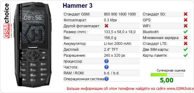 Данные о телефоне Hammer 3 на Вашем сайте