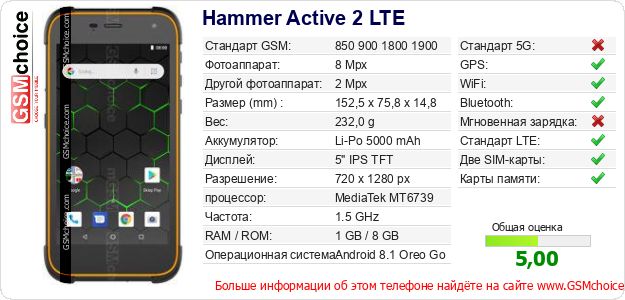 Данные о телефоне Hammer Active 2 LTE на Вашем сайте
