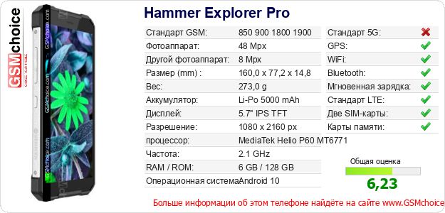Данные о телефоне Hammer Explorer Pro на Вашем сайте