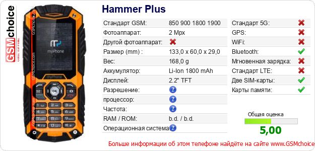 Данные о телефоне Hammer Plus на Вашем сайте