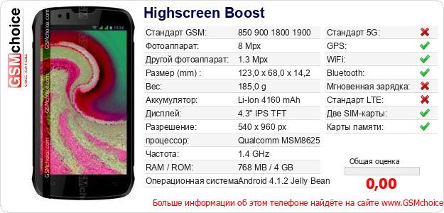 Данные о телефоне Highscreen Boost на Вашем сайте