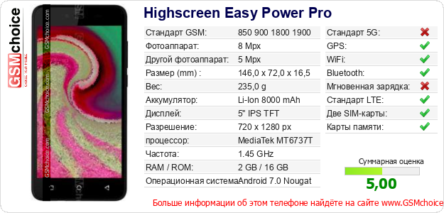 Данные о телефоне Highscreen Easy Power Pro на Вашем сайте