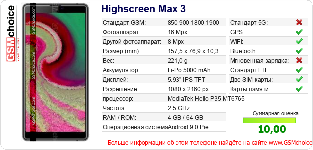 Данные о телефоне Highscreen Max 3 на Вашем сайте