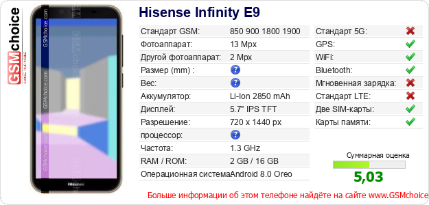 Данные о телефоне Hisense Infinity E9 на Вашем сайте