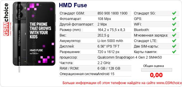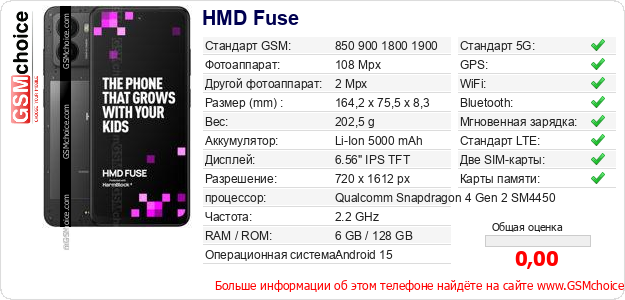 У Тебя есть свой сайт? Хочешь где-то разместить информацию о базовых данных мобильника HMD Fuse ? Это запросто устроить. Достаточно скачать картинку или скопировать и разместить на соответствующем сайте нижерасположенный код:Размещение этого кода вызовет появление нижерасположенной картинки: