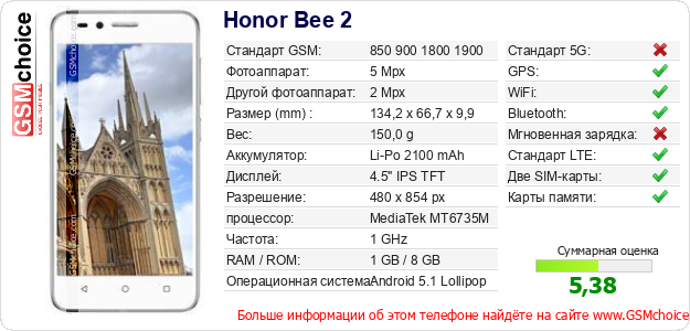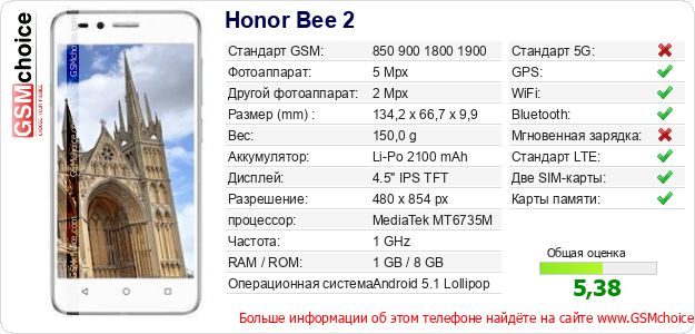 Данные о телефоне Honor Bee 2 на Вашем сайте
