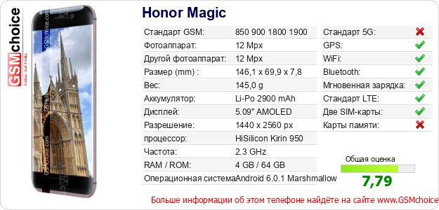 Данные о телефоне Honor Magic на Вашем сайте