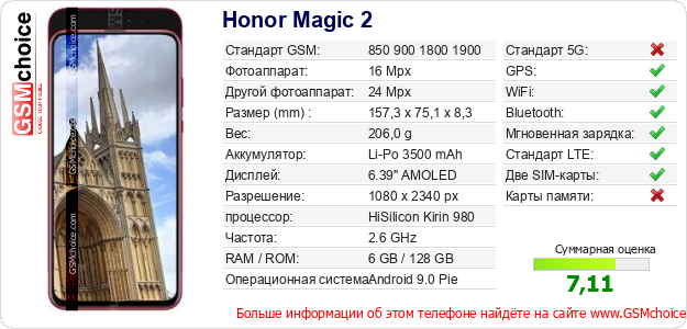 Данные о телефоне Honor Magic 2 на Вашем сайте