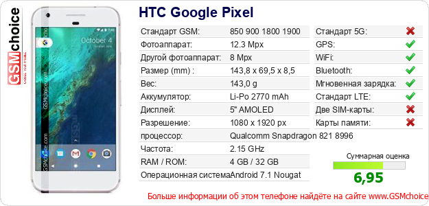 Данные о телефоне HTC Google Pixel на Вашем сайте