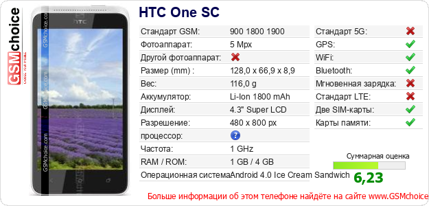 У Тебя есть свой сайт? Хочешь где-то разместить информацию о базовых данных мобильника HTC One SC ? Это запросто устроить. Достаточно скачать картинку или скопировать и разместить на соответствующем сайте нижерасположенный код:Размещение этого кода вызовет появление нижерасположенной картинки:
