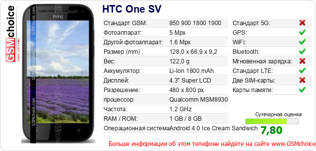 Данные о телефоне HTC One SV на Вашем сайте