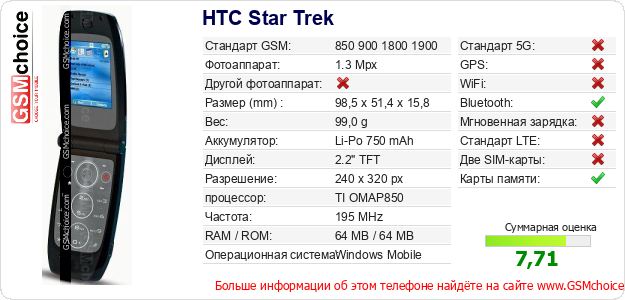 Данные о телефоне HTC Star Trek на Вашем сайте