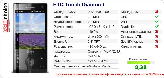 Данные о телефоне HTC Touch Diamond на Вашем сайте