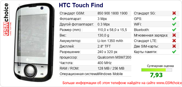 Данные о телефоне HTC Touch Find на Вашем сайте
