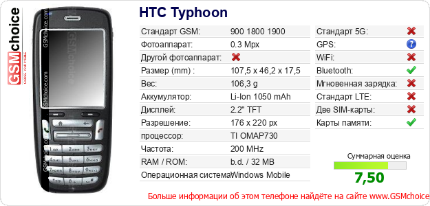 Данные о телефоне HTC Typhoon на Вашем сайте