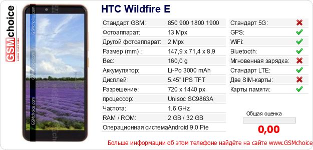 Данные о телефоне HTC Wildfire E на Вашем сайте