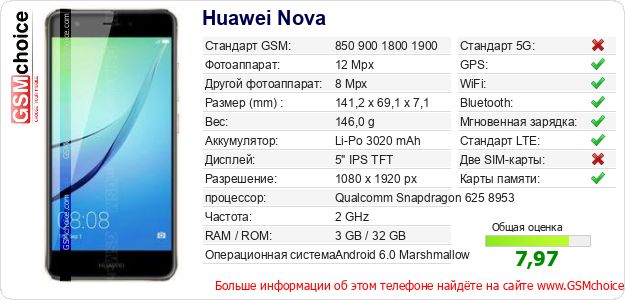 Данные о телефоне Huawei Nova на Вашем сайте