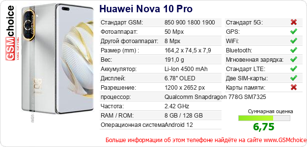 Данные о телефоне Huawei Nova 10 Pro на Вашем сайте