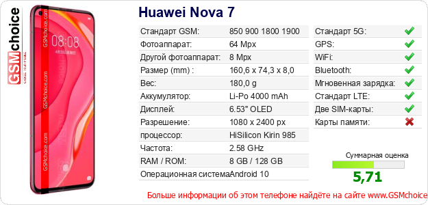 Данные о телефоне Huawei Nova 7 на Вашем сайте
