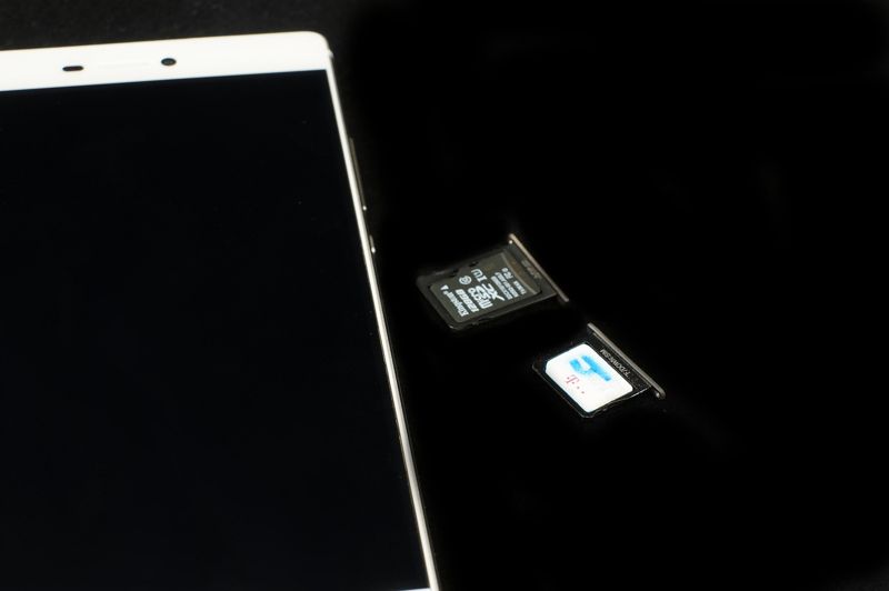В случае тестируемого мной устройства P8 верхний слот предназначен для карт microSD (до 128 GB), а нижний — nanoSIM. Оба лотка извлекаются специальной иглой, которая также металлическая.