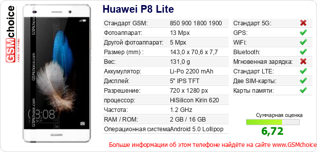 Данные о телефоне Huawei P8 Lite на Вашем сайте