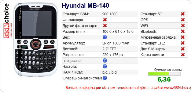 Данные о телефоне Hyundai MB-140 на Вашем сайте