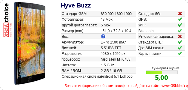 Данные о телефоне Hyve Buzz на Вашем сайте