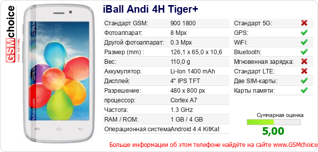 Данные о телефоне iBall Andi 4H Tiger+ на Вашем сайте