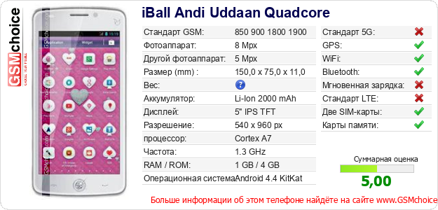 Данные о телефоне iBall Andi Uddaan Quadcore на Вашем сайте