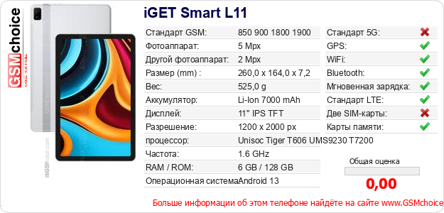 Данные о телефоне iGET Smart L11 на Вашем сайте