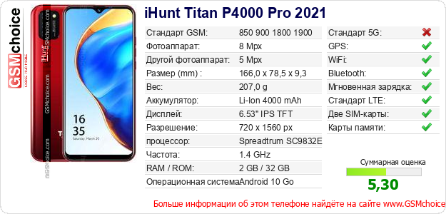 Данные о телефоне iHunt Titan P4000 Pro 2021 на Вашем сайте