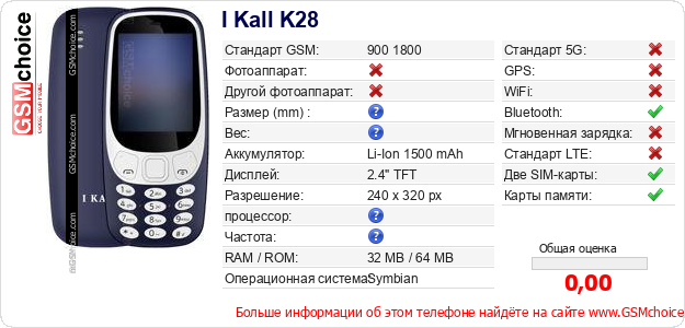 У Тебя есть свой сайт? Хочешь где-то разместить информацию о базовых данных мобильника I Kall K28 ? Это запросто устроить. Достаточно скачать картинку или скопировать и разместить на соответствующем сайте нижерасположенный код:Размещение этого кода вызовет появление нижерасположенной картинки: