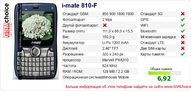 Данные о телефоне i-mate 810-F на Вашем сайте