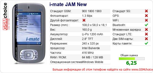 Данные о телефоне i-mate JAM New на Вашем сайте