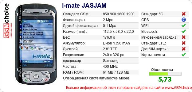 Данные о телефоне i-mate JASJAM на Вашем сайте