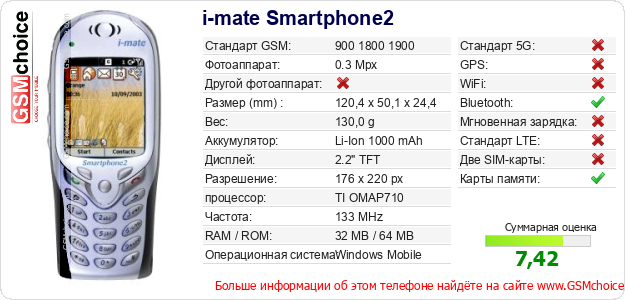 Данные о телефоне i-mate Smartphone2 на Вашем сайте