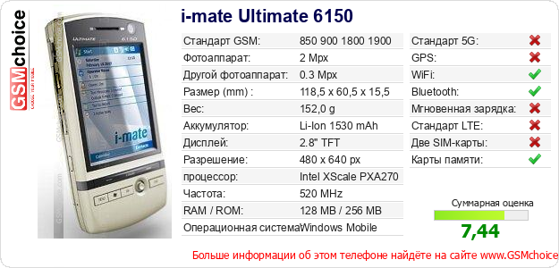 Данные о телефоне i-mate Ultimate 6150 на Вашем сайте