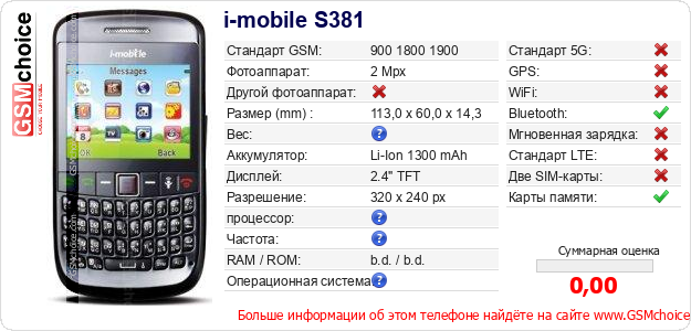 Данные о телефоне i-mobile S381 на Вашем сайте