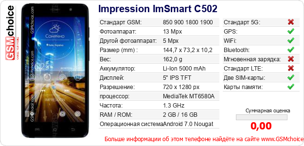 Данные о телефоне Impression ImSmart C502 на Вашем сайте