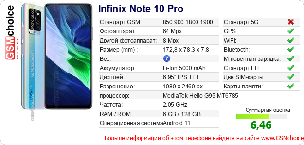 Данные о телефоне Infinix Note 10 Pro на Вашем сайте