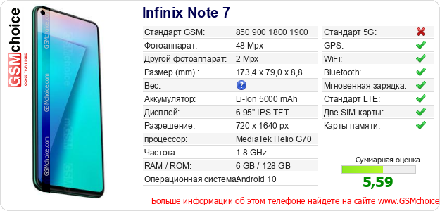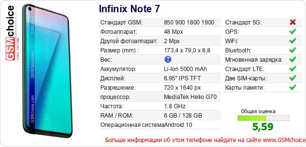 Данные о телефоне Infinix Note 7 на Вашем сайте