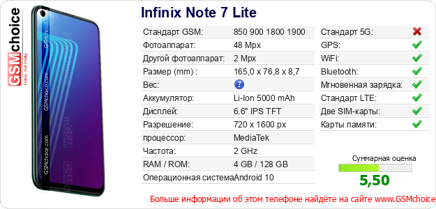 Данные о телефоне Infinix Note 7 Lite на Вашем сайте